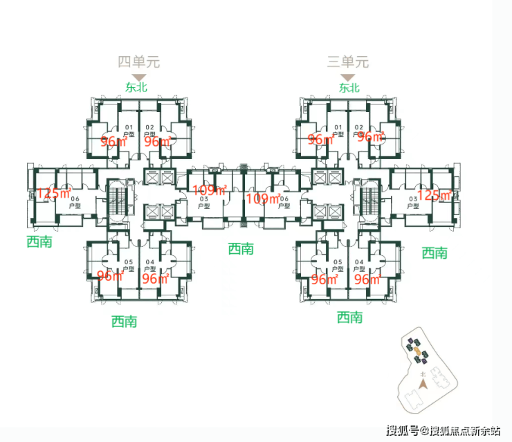 推出约560套,面积96-109-125㎡,整体户型西南向(03/04/05/06),部分东北(01、02户型)