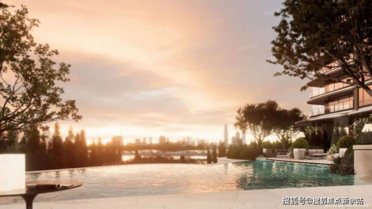 一层是亲水社交的“海心”。约700-800㎡的“海洋之心”水景,像是一片浓郁海蓝宝,点亮会所和园林,也成为郁郁葱葱绿色层层向外荡开的中心。