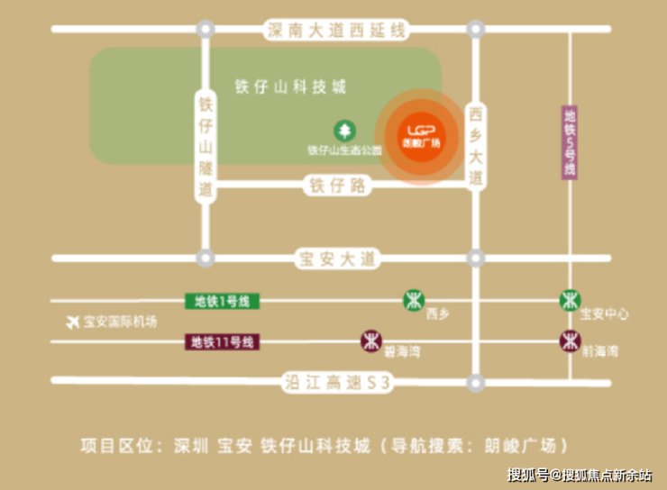 朗峻广场位于大空港和前海两大国际战略辐射轴心带,深圳市宝安区西乡街道铁仔路28号,雄踞铁仔山科技城初始位,同享创新科技产业与稀缺山体景观双资源。