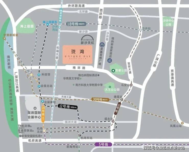 铁:穗莞深城际已在去年开通,南延段第一期至前海已开工,南延线二期规划到皇岗口岸,将与深圳地铁11、20号线接驳。目前区域内还有在建的深茂铁路、规划中的空港高铁站