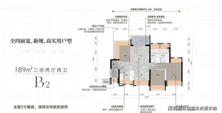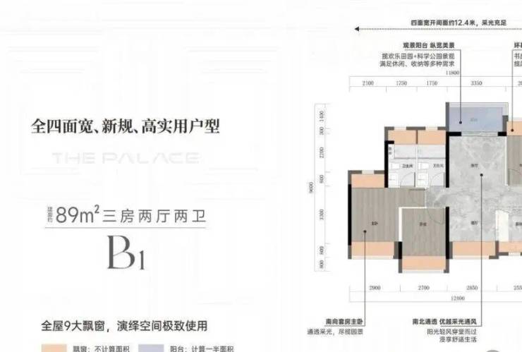➢建面约89平方B1/B2户型三房两厅两卫