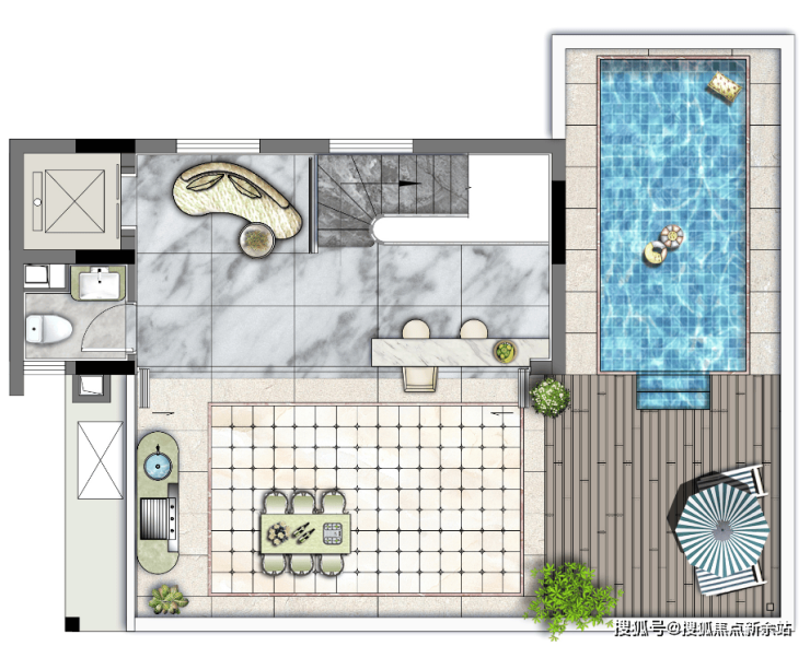 偌大的空间,可以放下父母的花花草草,可以放下孩子的摇椅,甚至可以放下一个大型的按摩泳池。