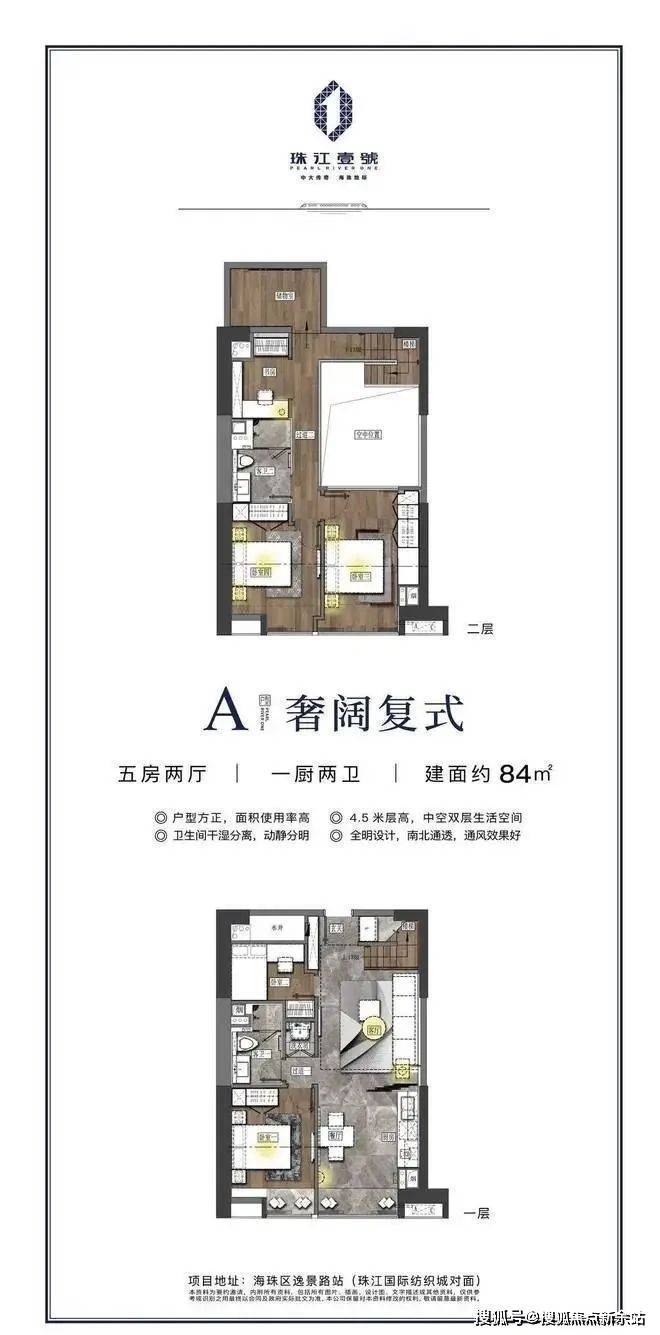 84㎡户型全明设计,南北通透,通风效果俱佳;而且毫不拥挤,4.5米挑高的客厅,让空间充满奢华感,能享受到普通住宅140㎡以上才能达到的产品功能,市场上实属罕见,非常适合二胎或三代同堂的家庭居住。