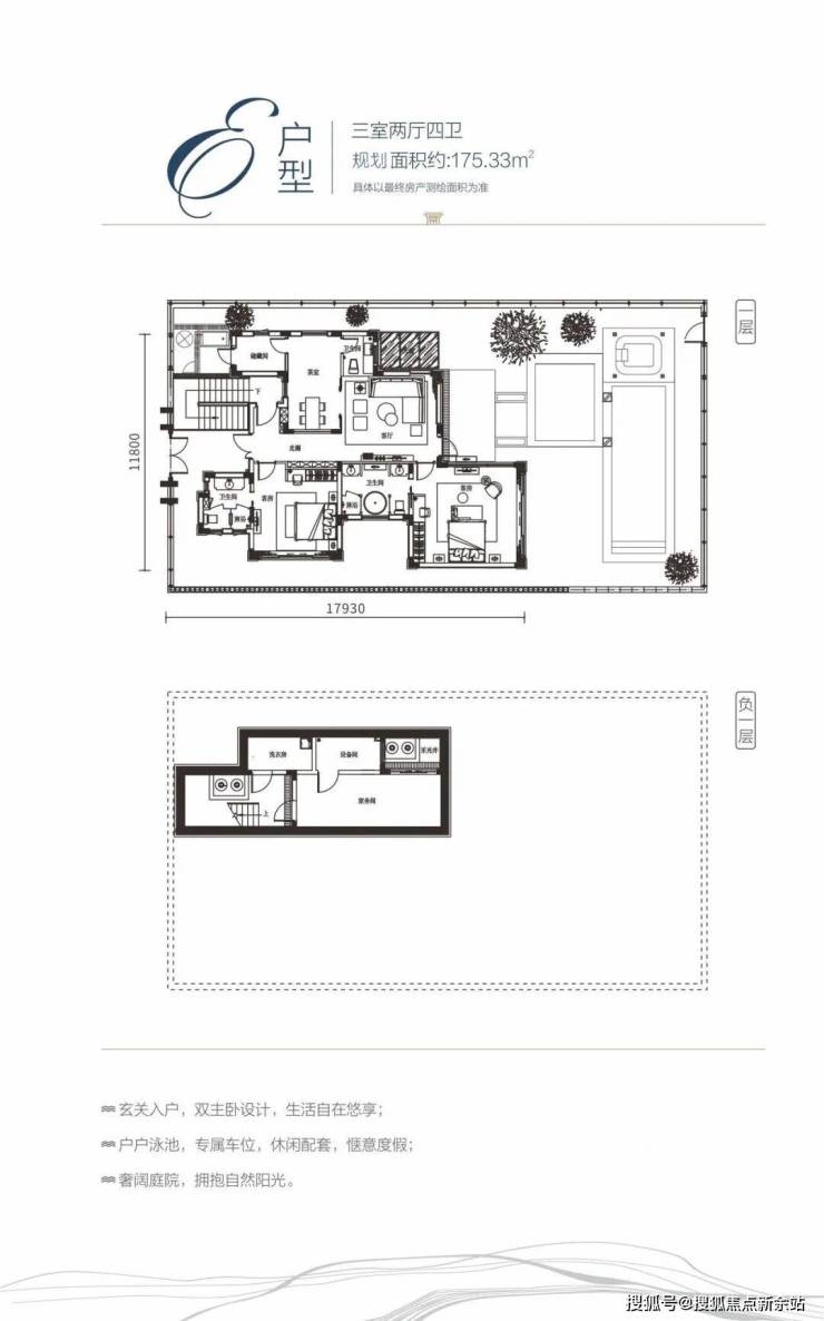 E户型:三室两厅四卫 / 规划面积约175 ㎡