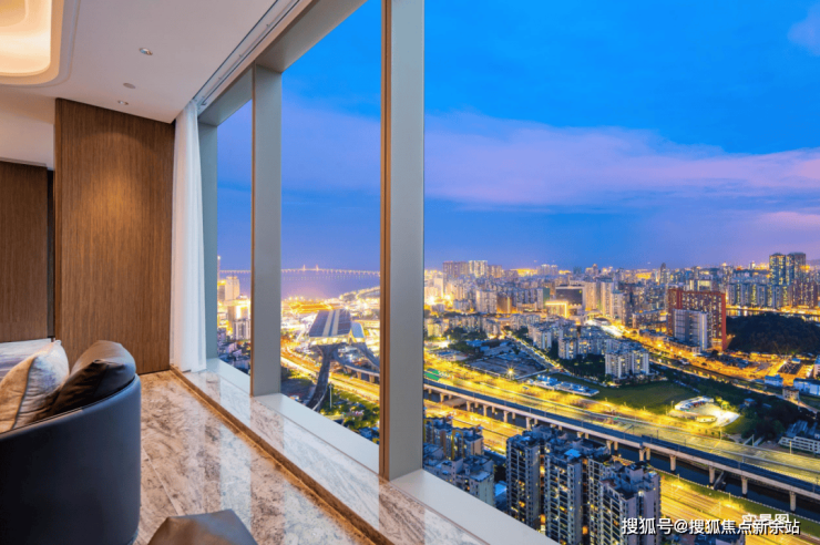 在云端视野,可尽览三城盛景,收纳无边际海景、前山母亲河、将军山及珠澳双城多重景观视野。