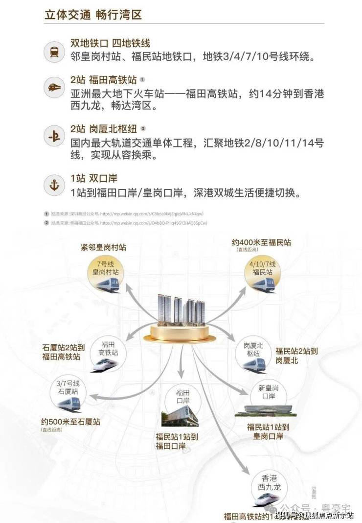 卓越缦悦占据交通要塞,项目紧邻地铁7号线皇岗村站,一站直达石厦站换乘3号线,两站即达福田站换乘4号线,轻松通达全市。此外,项目周边主干道如滨河大道、粤港澳高速等环绕,驾车出行前往南山、罗湖、龙华等地同样便捷。无论是日常通勤还是周末出游,卓越缦悦都能让您轻松应对,畅享都市便捷生活