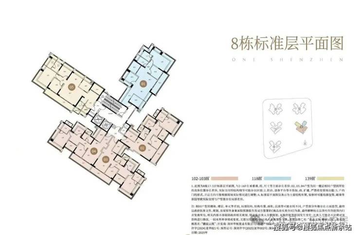 中建鹏宸云筑,共分3期开发建设,本次将推的是西地块8栋住宅,总高32层,2梯5户设计,总共154套,面积有102-118平的4房2卫,139平的4+1房2卫户型。