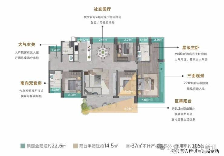 ②约16㎡南向瞰景阳台,约7.2m阔绰面宽,超越同级标准