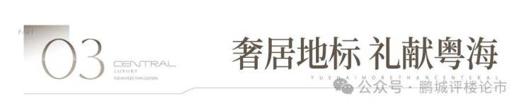 奢阔空间丨中心极境 礼献粤海 翰熙典居,粤海十年之后再上新,全新奢居综合体礼献峯层。可售主力户型新规后建面约105-140㎡奢雅空间,全明方正户型将空间奢阔感与生活舒适度完美契合。明星户型超6米阳台开间,全维度巨幕景观视野,尽揽湾心万千风景。