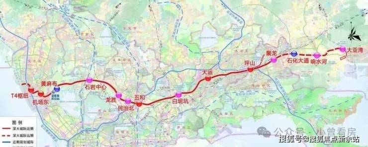 深大城际:该线路预计2026年开通,起自坪山聚龙站,终至宝安T4枢纽,线路全长约 69.2 km,线路设计速度为 160 km/h。