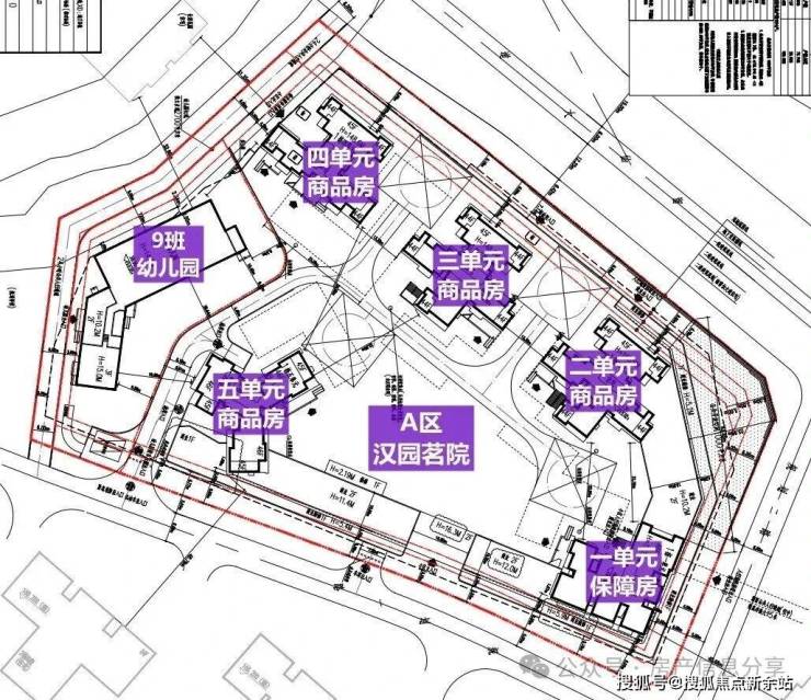 汉园茗苑分两个地块A区和B区,A区是由4栋高层住宅和1栋保障房组成,总1014户,其中保障房331户,可售商品房683套;一单元、五单元层数为46层,二三四单元层数为45层;一栋一单元为保障房;