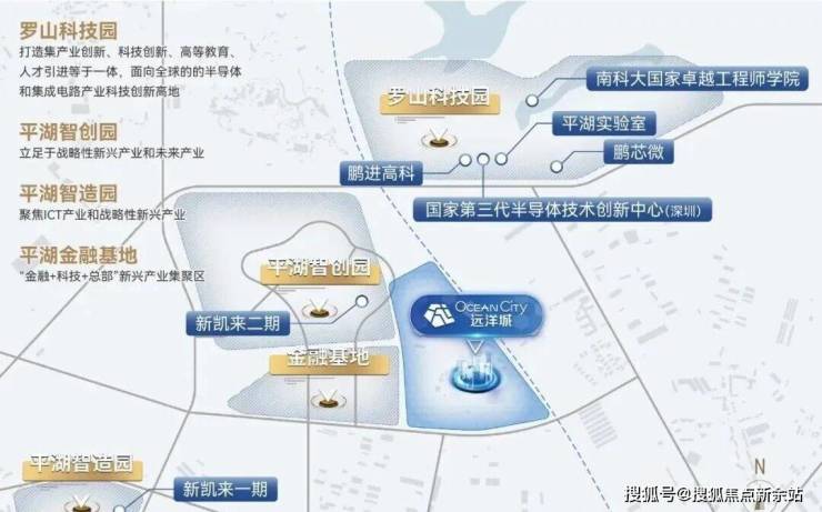 平湖北部新城已建成罗山科技园、平湖智造园、平湖智创园,平湖金融基地,重点发展芯片光刻机、半导体、ICT等新兴产业,打造面向全球的半导体与集成电路产业科技创新高地。