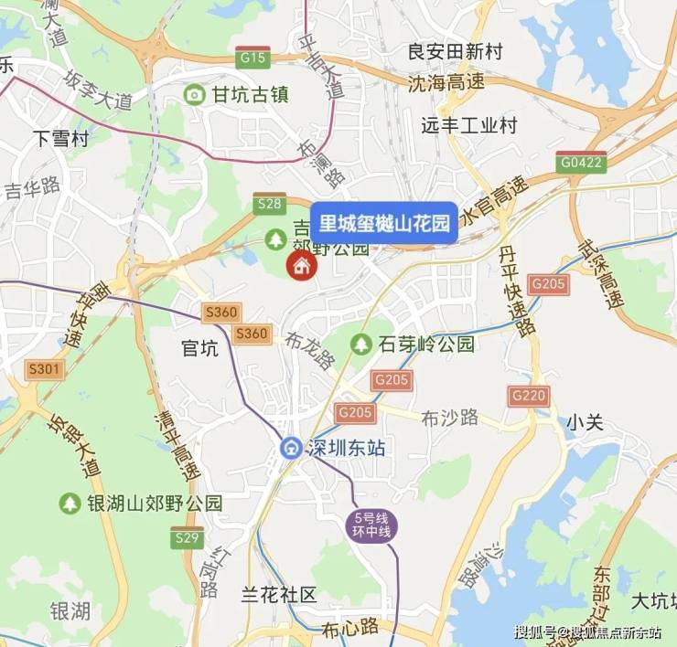 里城玺樾山,位于龙岗区吉华街道三联社区,项目背靠三联郊野公园,从大区位来看,北邻平湖,西邻坂田,南邻布吉中心区,东邻横岗片区。
