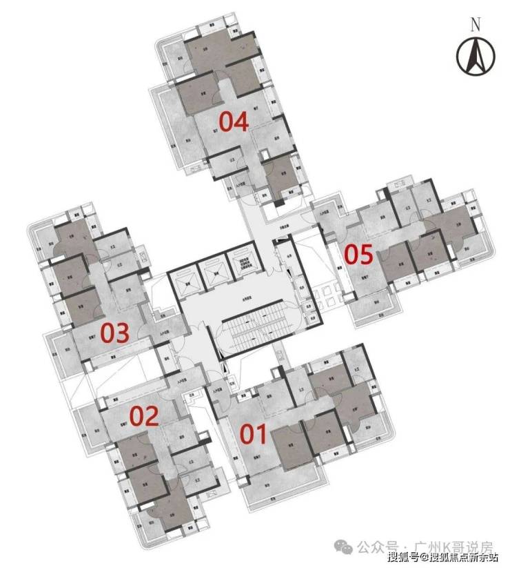 1-3栋为3梯5户,4-5栋为3梯4户,均为46-48层的超高层住宅,并且还配备一所9班幼儿园。
