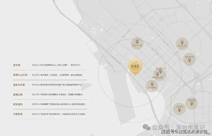 壹方城、欢乐港湾、前海HOP、大仟里、大悦城、万象前海、前海山姆、海雅缤纷城等十大标杆商业环绕,总计超160万㎡世界级地标商圈。