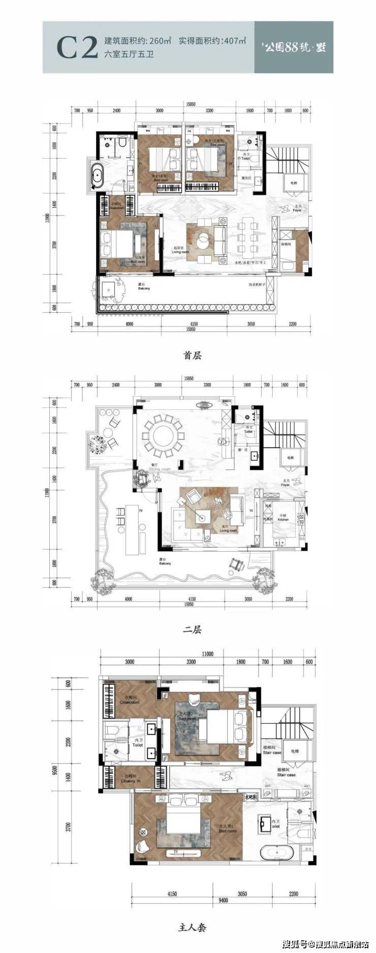 奢华主卧套房配独立衣帽间卫浴 私密性高