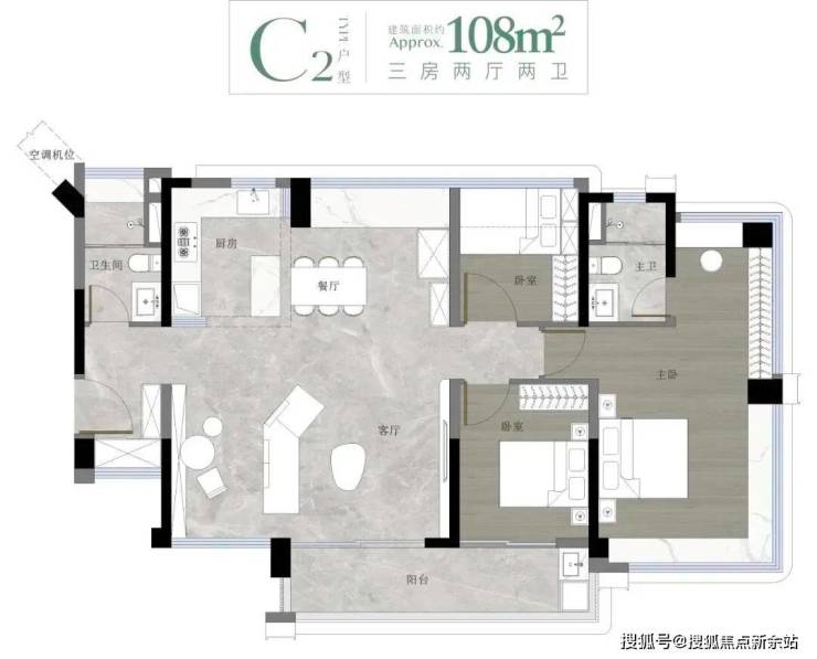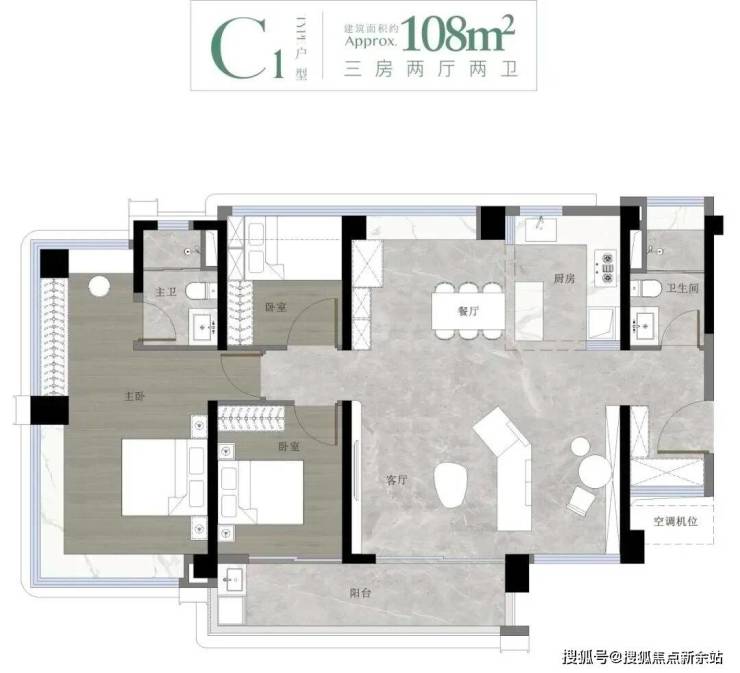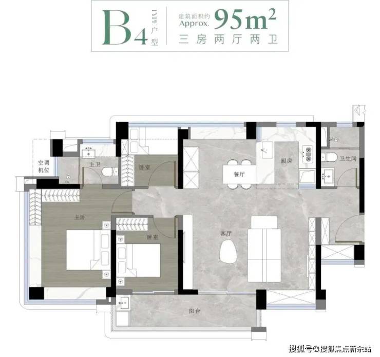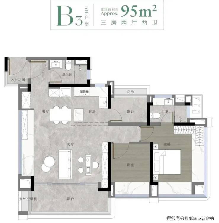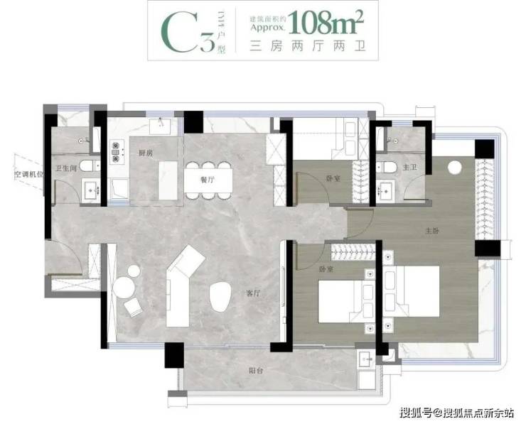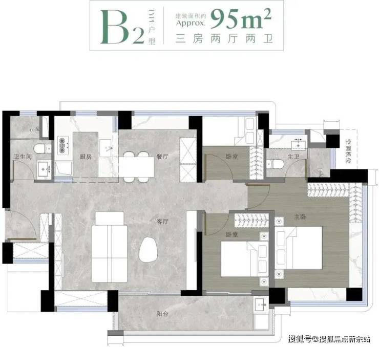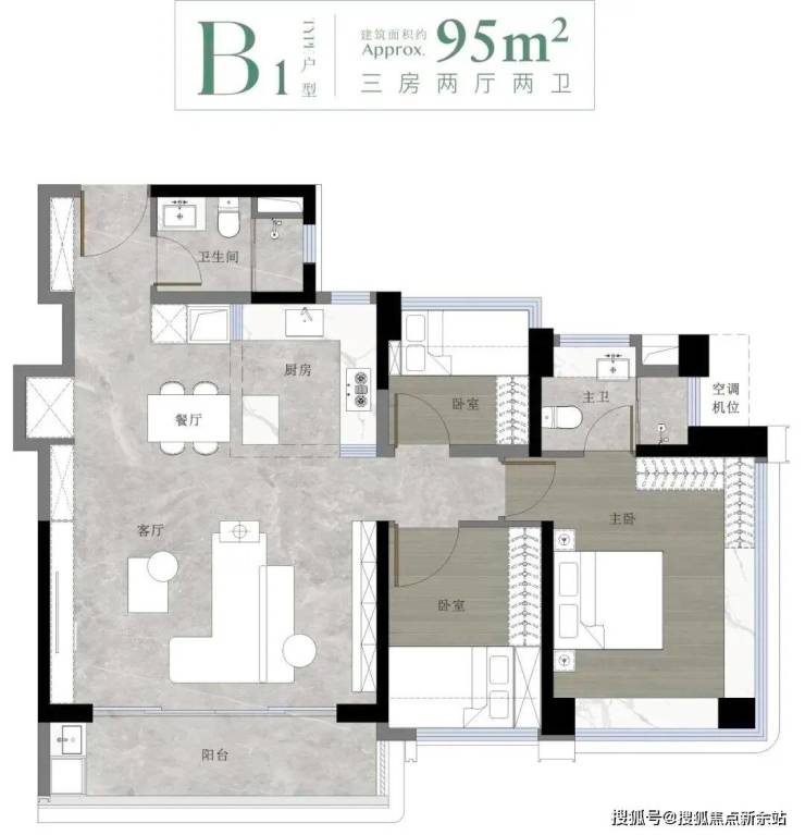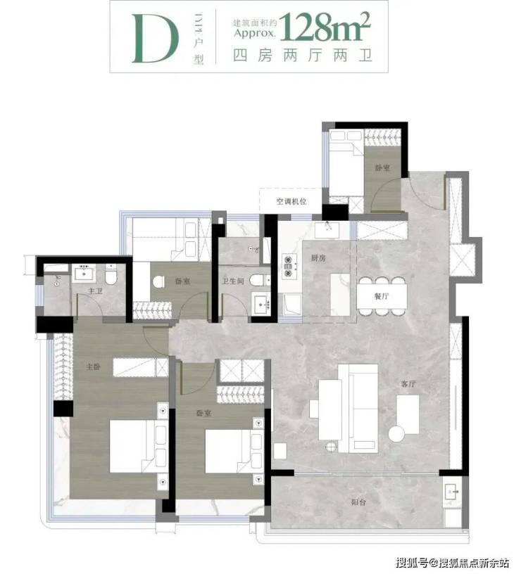108㎡3+1房位于1、2栋朝向和景观相对较好的梯腿,属于95㎡的进阶。