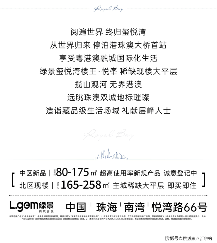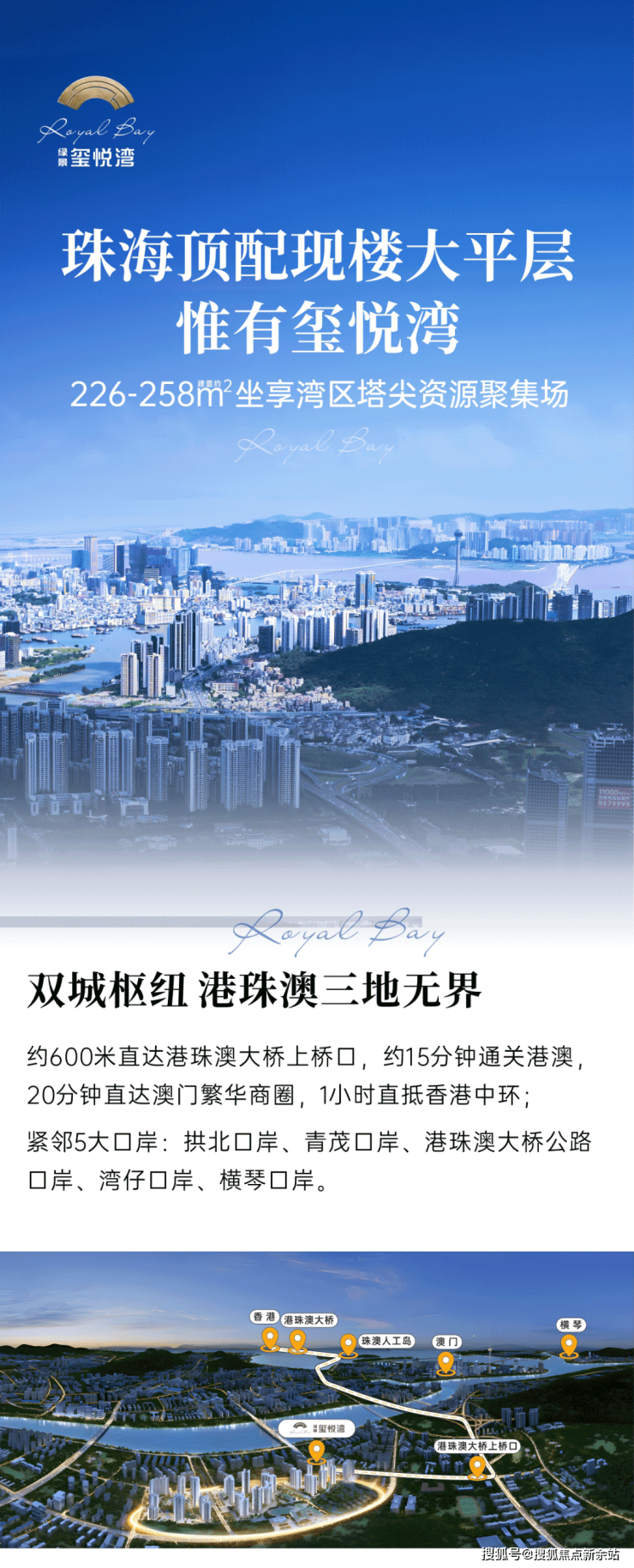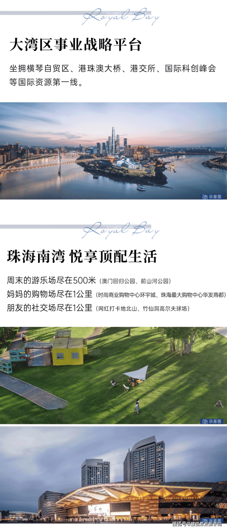 地段交通:位于珠海南湾核心,近港珠澳大桥上桥口,享海、陆、轨等六大交通体系,快速通达港澳及湾区。