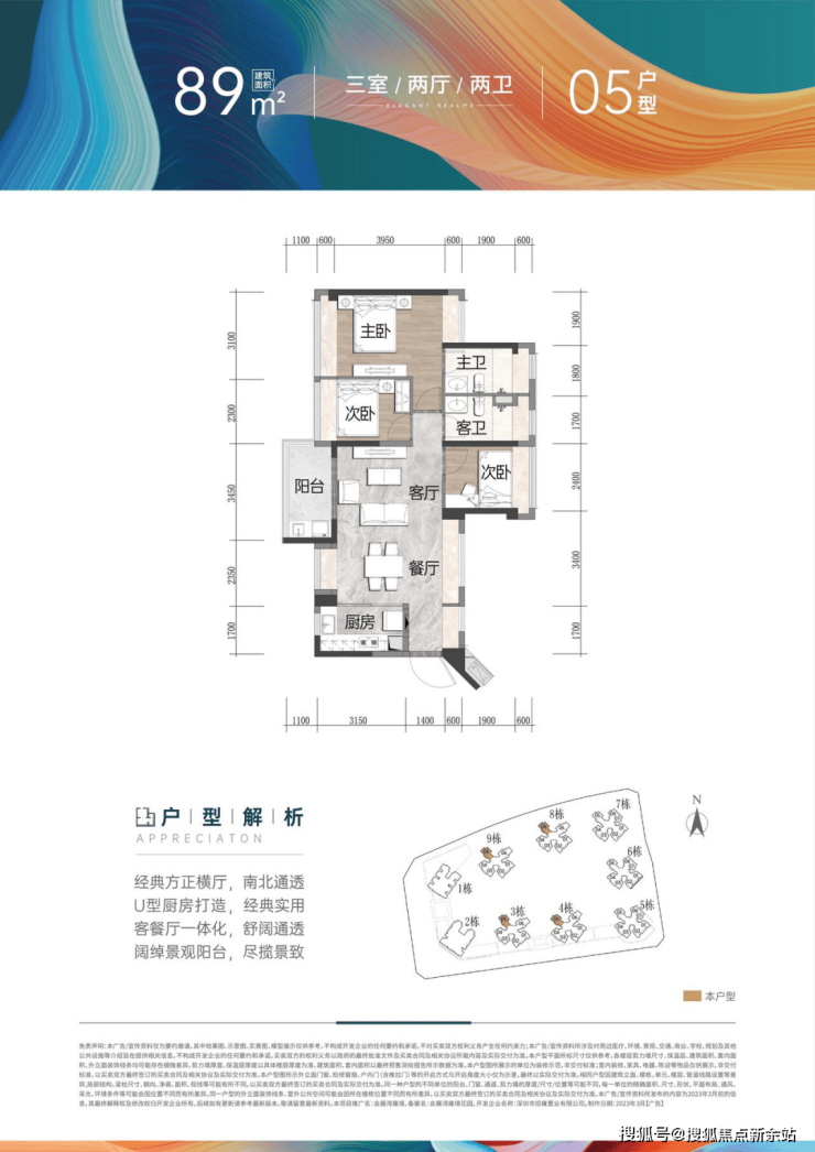 • 建面约89㎡ 3房2厅2卫(横厅):经典宽阔横厅打造,客餐厅一体化设计,通风采光俱佳,全凸窗设计