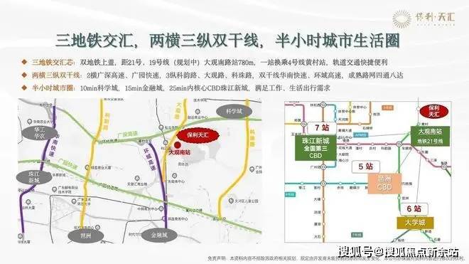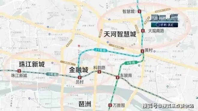 项目距离21号线大观南路站约1.2公里,步行大概需要20分钟,一站换乘4号线去往金融城、琶洲,4站到员村换乘5号线直抵珠江新城。