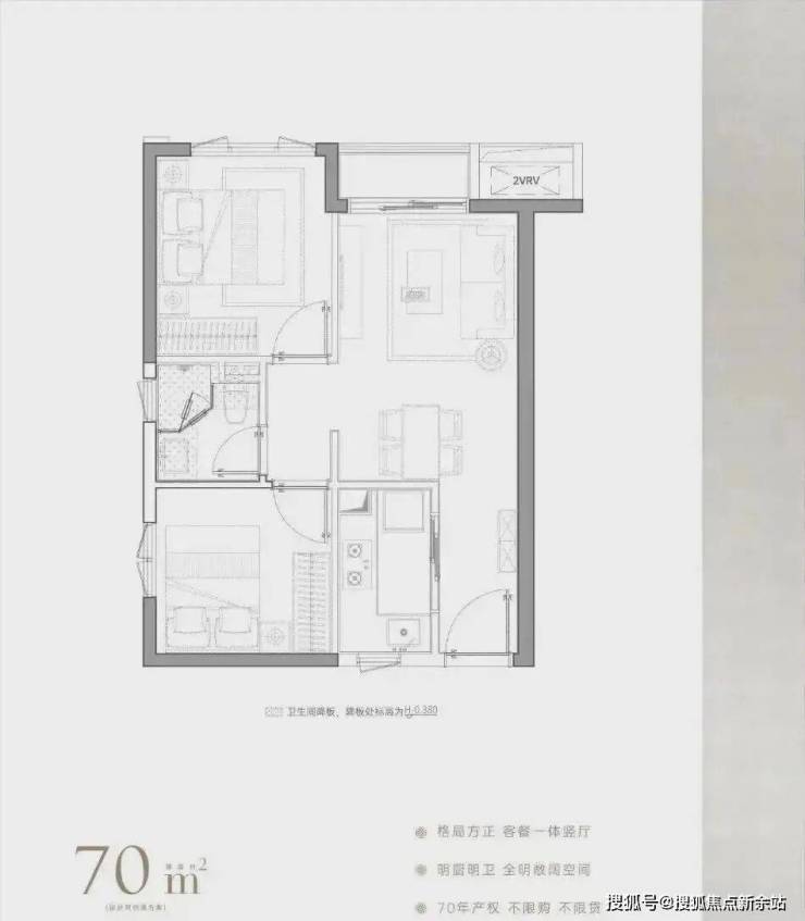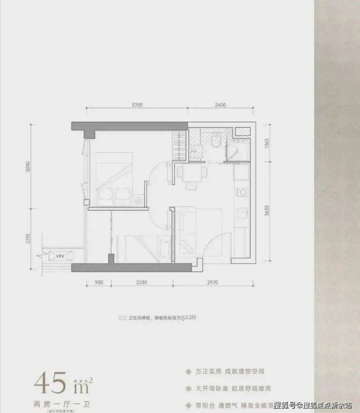 宸悦府的公寓产品38-70平1-2房,45F(1470户),3梯14户(部分楼栋8梯26户),类住宅设计。