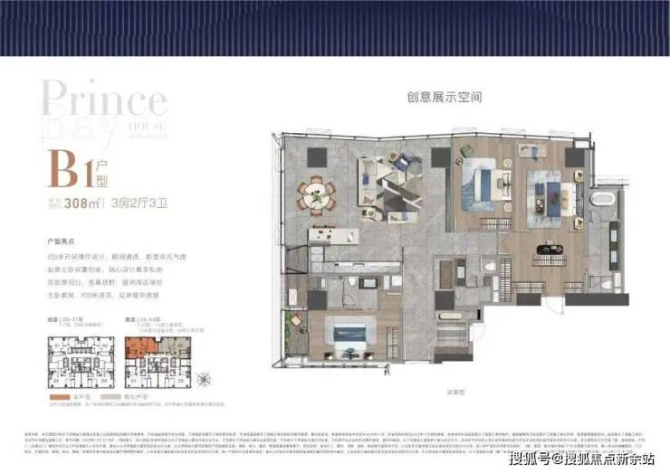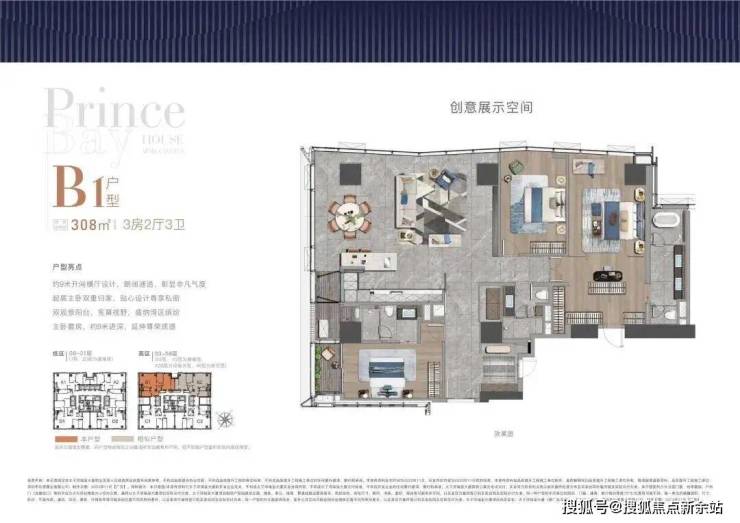 308㎡三房三卫户型:分布在低区(8-19层、21-31层)和高区(33-44层、47-59层),总价约2500-4000万元(一说2579-3693万元),单价约8-11万元/㎡(一说83271.15-119024.15元/㎡)。该户型拥有更广阔的视野和更好的观景效果,适合注重生活品质和享受海景的购房者。