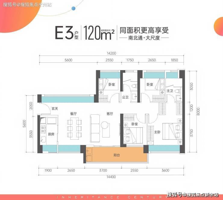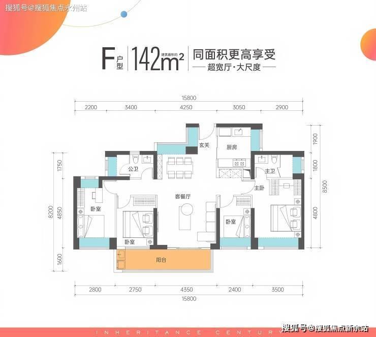 100㎡四房两卫:竖厅设计,四开间朝南,客厅开间3.5米,主卧带步入式衣帽间和三分离卫生间,玄关收纳空间充足,总价约300万。