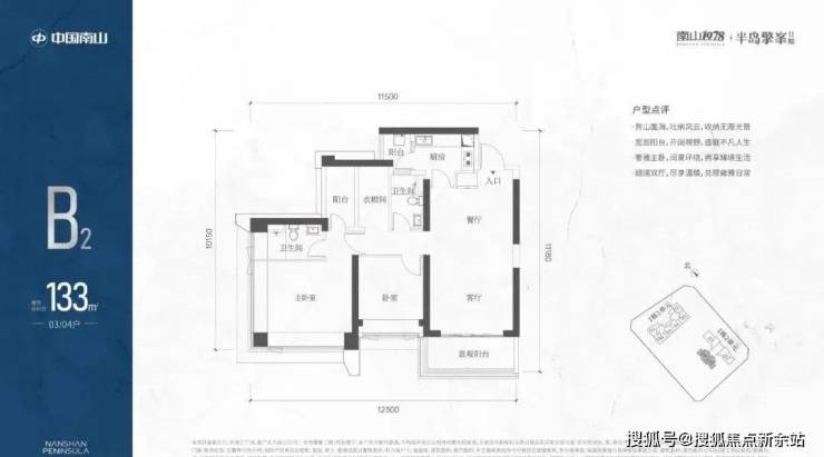 B2有两条腿,分别1-2栋03/04,主朝向西南向,竖厅设计。