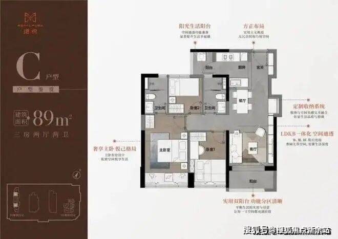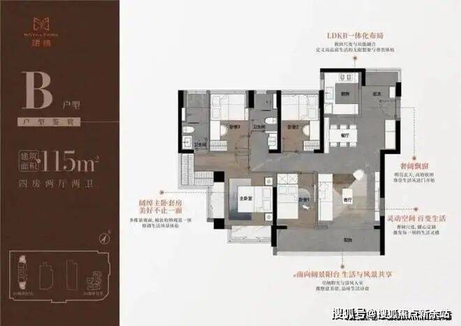 4️⃣ 2梯3户低梯户比,实用率达84%-98%