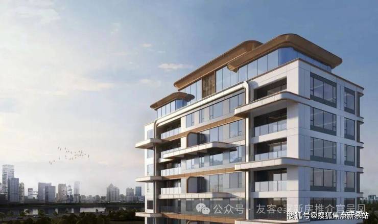 空中院馆 让建筑与自然无界深研人居的美学表达,采用湾流镜面曲线的立面设计,通过自然造物的弧线美学与光影器物得相融合;每户超大南向阳台向外衔接通高约6-6.2米延伸空间,恰如一艘停靠在安静港湾的游艇,随时驶入更广阔更高处的自由之境。