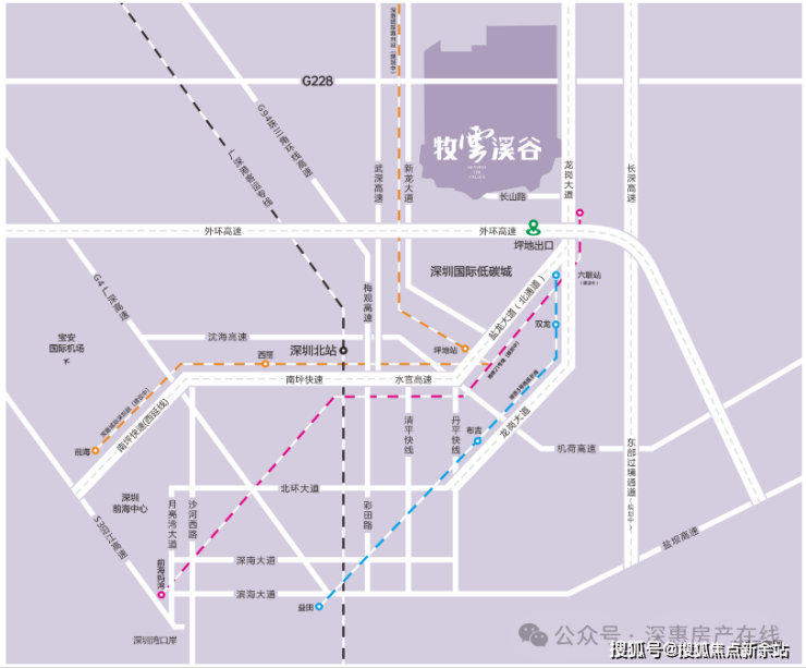 踞守龙岗大道旁,经盐龙大道连接水官高速,经深圳外环高速畅达南山与宝安,快速链接龙岗中心城与福田;