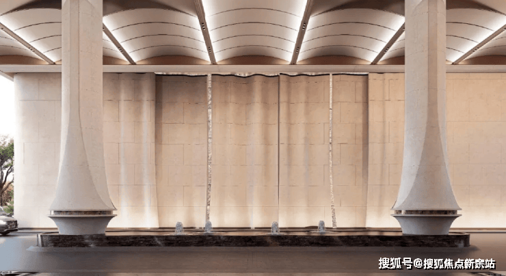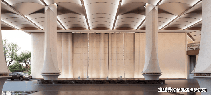 「后海招商玺」车行大门做了殿堂级落客区,设有天幕和水景,非常具备归家仪式感。