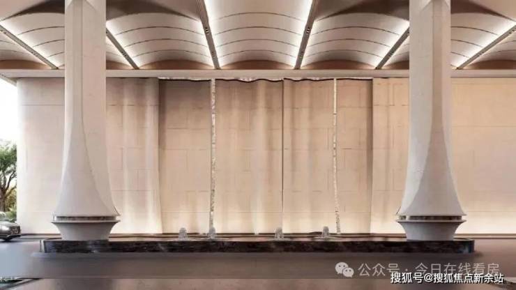 车行入户大门采用殿堂级落客区设计,连接天幕和水景,宛如踏入了一座奢华的宫殿,归家的仪式感瞬间拉满。每栋独立入户大堂采用无棱角高端石材,风格与大门相呼应,彰显着您的尊贵身份 。