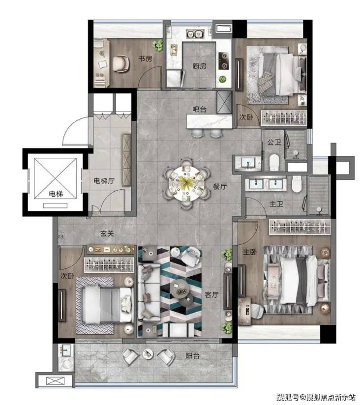 Hub厅厨一体化|主套3.3米全景飘窗