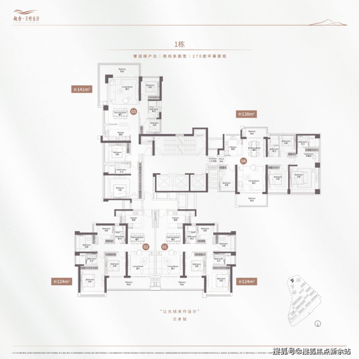 ③楼栋单梯腿,南向多面宽,采光通风最大化。