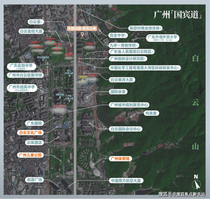 作为白云当之无愧的发展头排,白云新城北部承接磅礴能量,享受高度集中的资源倾斜,国际会堂、广州城市规划展览中心、云珠酒店、鸣泉居等城市封面地标和国宾级物业相继落成,一众高量级配套集聚于此,未来将成为广州版“国宾道”,承担起白云新城对外“新名片”。