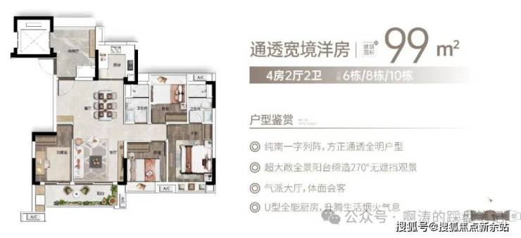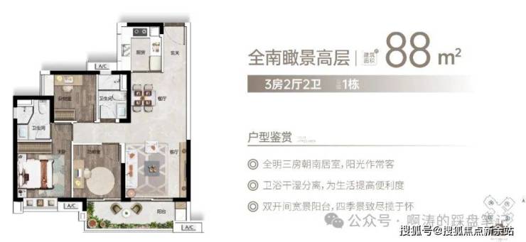 全南大阳台,挥洒阳光与清风。建面约75-114㎡光感洋房,户型设计全朝南开间,动静分离,方正实用,大尺度双联阳台,采光通风更佳,肆意挥洒阳光和清风。