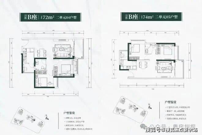 户型设计:主力户型为 72-74㎡两房、88㎡三房、137-138㎡四房,得房率约 79%,部分户型赠送后可达85%以上。