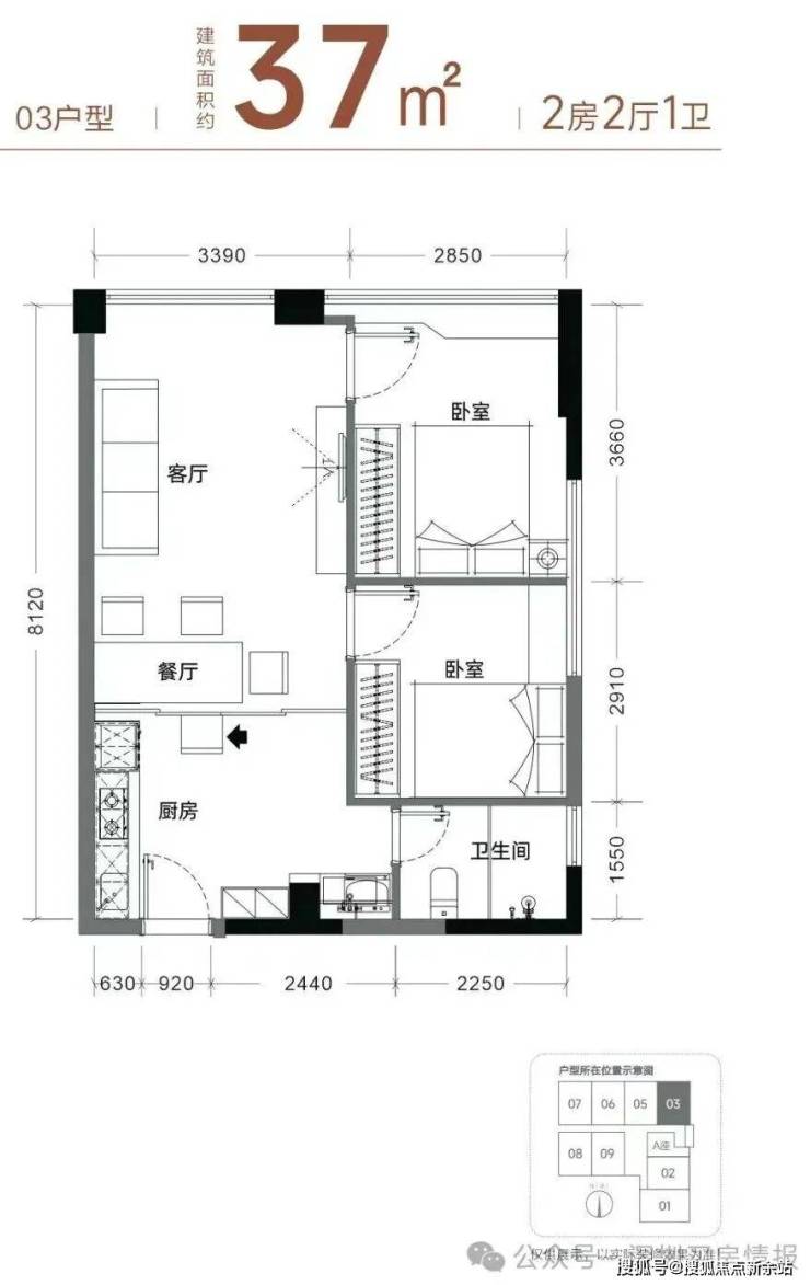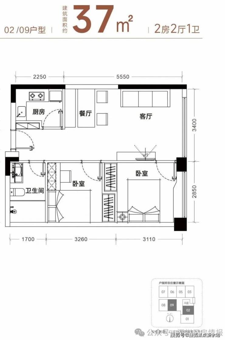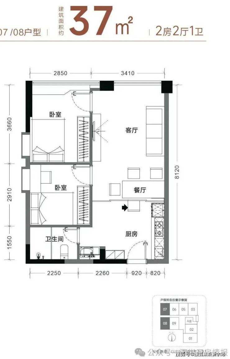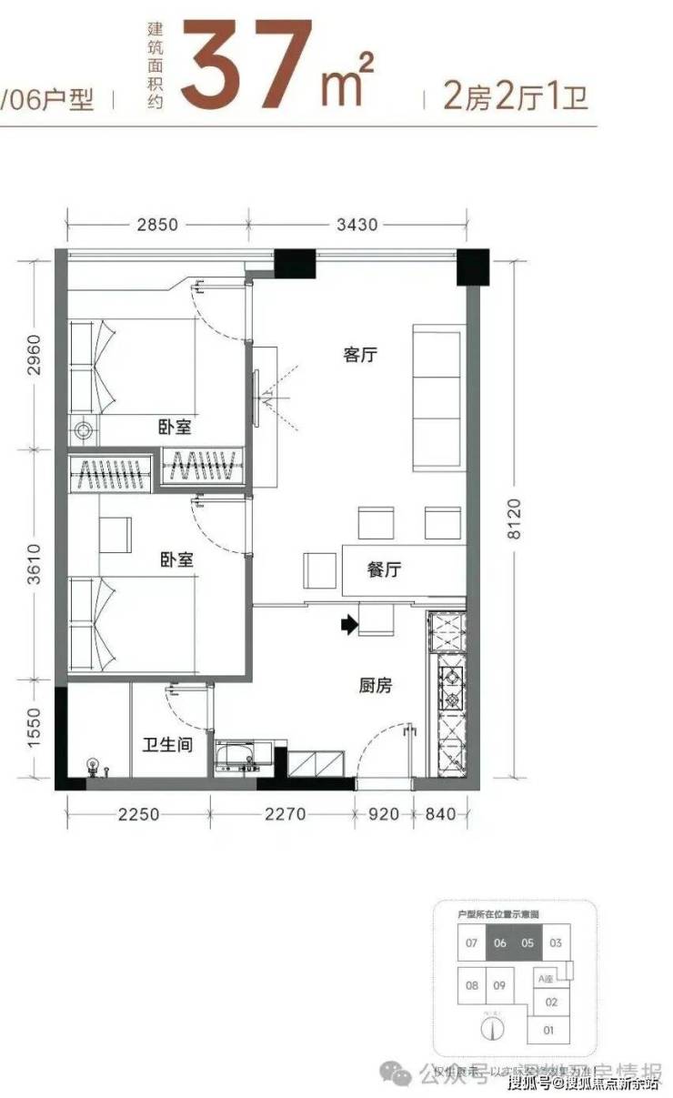 【产品面积】约37㎡两房(实际套内使用面积接近54㎡)