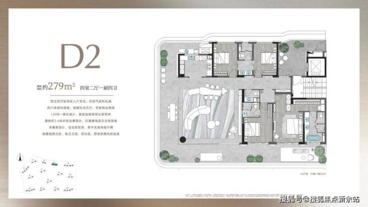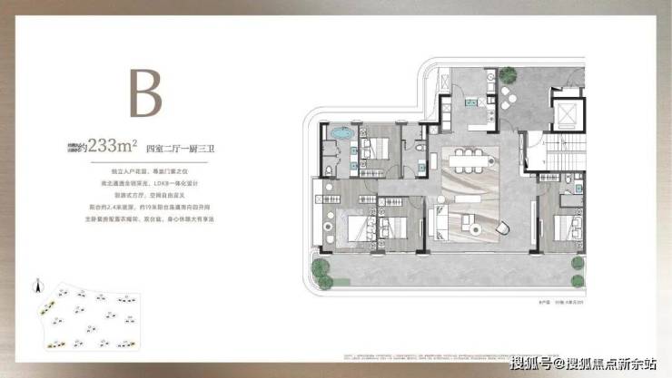 南北通透,超阔南向开间、内外景致无限交融,一切服务于奢适至上,从光影、视野、体感等营造纯粹阔绰的空间格局。