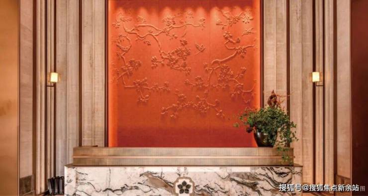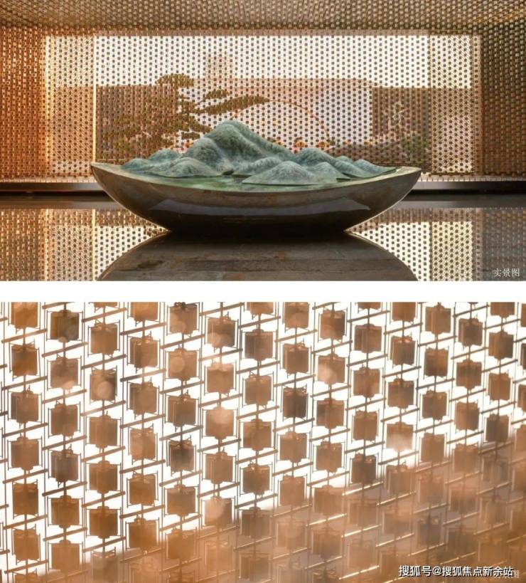 【泗水归堂】取春天清风徐来、水波不兴的意象,以“广绣隐现、幕墙灵动”为设计概念,打造泗水归堂空间入口照壁屏风,彰显归家尊贵感与品质