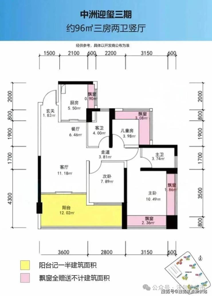 93-96㎡的3房2厅2卫,设计的是经典竖厅格局,进门入户玄关,客厅3.6米开间,LDKB一体化设计,三开间朝南,3个卧室分别做到了主卧14.71㎡/次卧7.89㎡/次卧7.06㎡(包含墙体飘窗),客厅连接次卧出6.4米长的大阳台,U型厨房,卫生间干湿分离,赠送面积高达14.21㎡,东南或正南朝向。