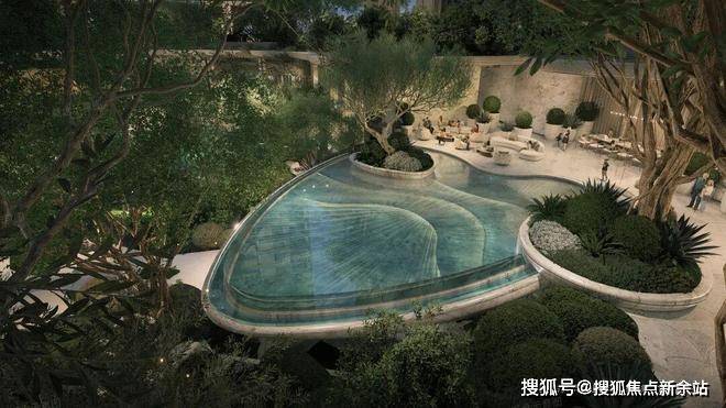 约5.5万㎡三层立体园林:以“森海·浮屿”为概念,打造峡谷、银滩、心形戏水池、800㎡中央水景等多重景观,移步换景,仿佛漫步于滨海度假胜地。