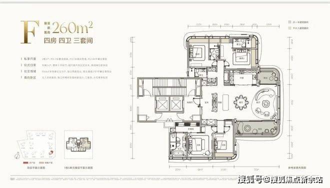 约260㎡(四房四卫三套间):项目“头牌”,全盘仅40套。采用创新的全景舱设计,拥有270°无遮挡环幕海景。专梯入户、十字前厅,仪式感与景观视野双双拉满。