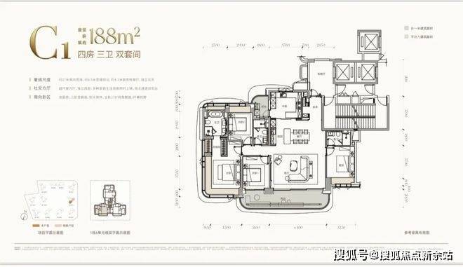 约188㎡(四房三卫双套间):宝中“六边形战士”。集核心地段、顶尖配套、实用空间、优质景观、央企品牌于一身,几乎没有短板,预计将成为竞争最激烈的户型。