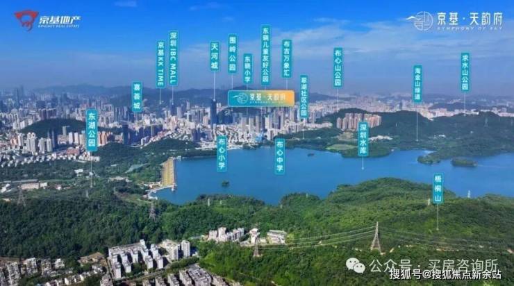 先抛开产品部分,京基天韵府的素质绝对不差,其位于罗湖区东湖街道仁心路与围岭中路交汇处西北侧,属于罗湖的老牌居住区——布心片区,周边配套十分丰富,距离地铁5号线布心站仅约200米,步行4分钟,实打实的地铁物业,出行非常方便。