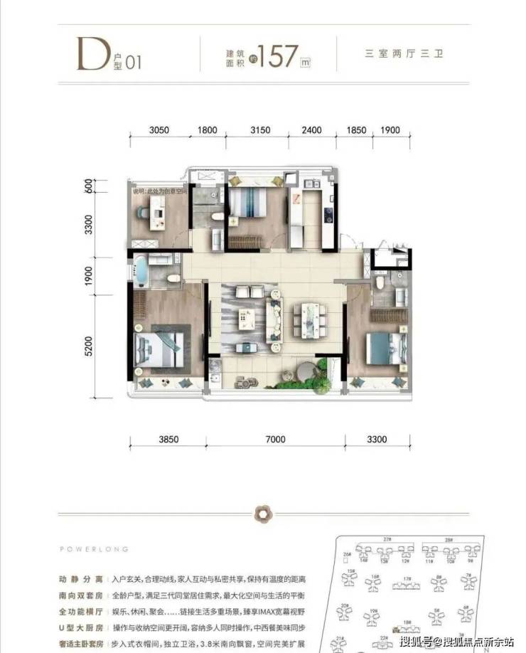 157㎡大户型:针对高端改善客户,空间布局更为阔绰,充分考虑多代同堂家庭的居住需求,实现家庭成员间的互不干扰与和谐共处。