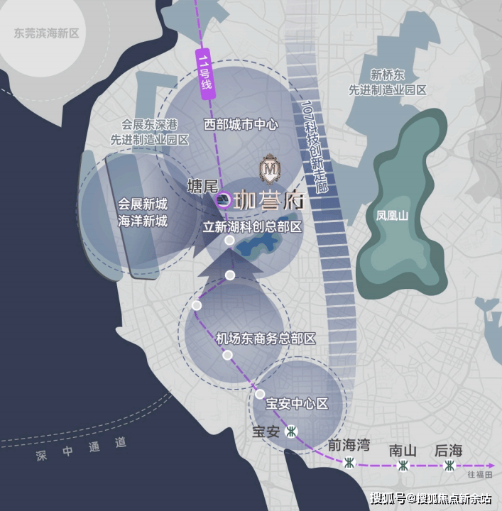 项目最大亮点之一便是 “零距离” 地铁 —— 直连 11 号线塘尾站,6 站到宝中、7 站到前海、9 站到后海、11 站到车公庙,无论是通勤南山、福田,还是往返核心商圈,都高效省时。更值得期待的是,片区中远期还有规划线路 30 号线横穿而过,未来交通路网将进一步升级,出行选择更丰富。