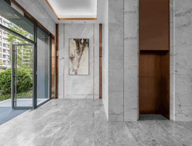嘉华嘉誉湾的交标同样奢华,全屋采用一线品牌,并且严选无污染装修材料,西门子智能电子锁、西门子厨房三件套、科勒洁具三件套、欧派橱柜……目之所及皆是精工质感。哪怕是公区也精雕细琢,挑高大堂设计、全石材铺装、暗金色电梯等,无不拉满回家仪式感。