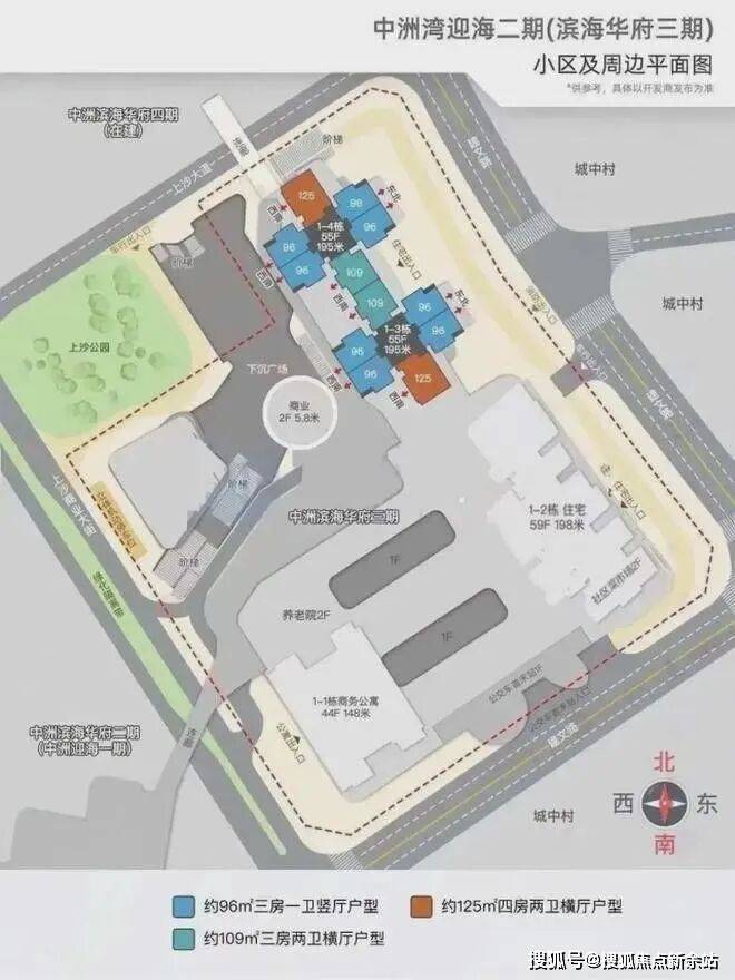 本次开盘共两个单元,楼体朝向东南,不仅可以远观海景,近处还可以俯瞰与一期围合成的社区绿地。中洲湾迎海售楼处电话:4008368707,大部分户型朝向东南,少数户型朝东北。其中,96㎡的三房一卫是本次的主力户型,预计有372套;109㎡的户型预计95套;125㎡的户型共有93套。